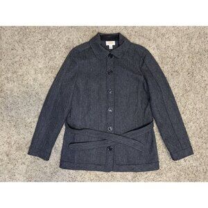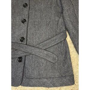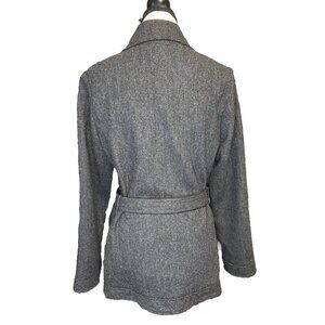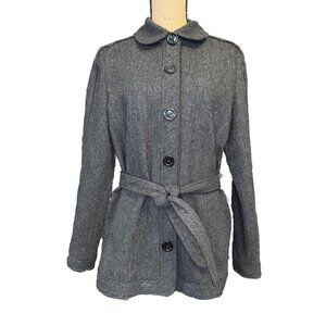 TALBOTS Jacket Coat Dark Gray Herringbone 100% Wool Belted Formal Office Sz 10