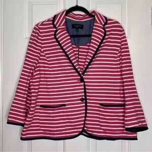 TALBOTS Jacket, Pink & White Nautical Striped Blazer XLP extra large petite
