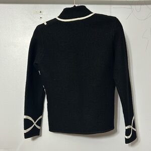 TALBOTS Jacket zip WOOL S Black Front White Trimming SMALL