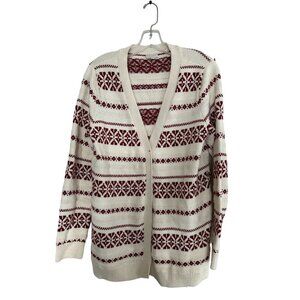 TALBOTS Knitted Cardigan Red White Nordic Geometric Design Size Med