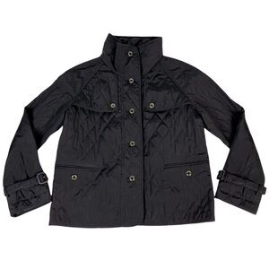 TALBOTS LIGHTWEIGHT BLACK QUILTED FUNNEL NECK STORM FLAP BUTTON DOWN JACKET
