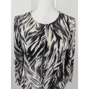 TALBOTS! LIGHTWEIGHT BLACK, WHITE ABSTRACT ZEBRA INSPIRED CARDIGAN SWEATER! SZ M