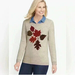 TALBOTS Leaf Motif Crewneck Sweater A80