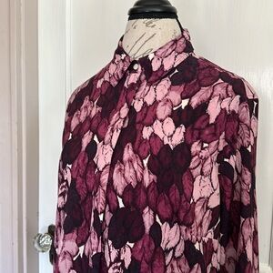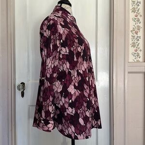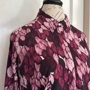 TALBOTS Leaf Print Button Down Blouse - Mulberry