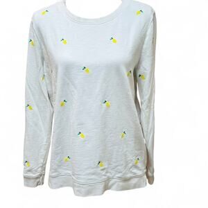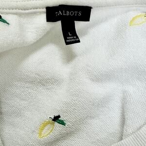 TALBOTS Lemon Embroidered Sweater White Long Sleeve Pullover Women’s L
