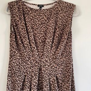 Talbots Leopard Animal Print Dress Sleeveless Front Tuck Size XS