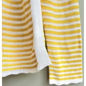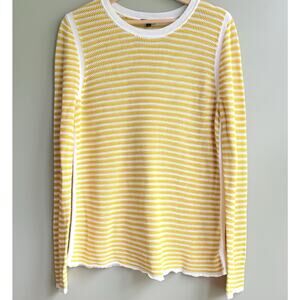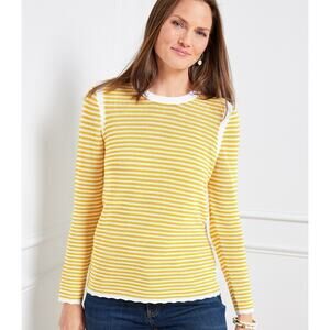 TALBOTS M Crewneck Knit Sweater Scallop Trim Yellow White Stripe Preppy Coastal