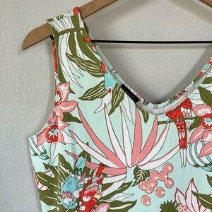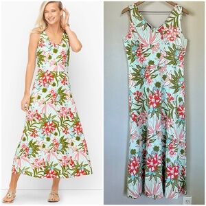 TALBOTS M V-Neck Sleeveless Jersey Maxi Dress • Soft Aqua Tropical Floral