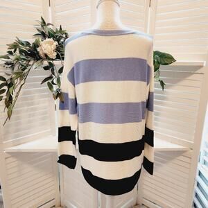 TALBOTS MULTI BLUE STRIPE SWEATER WITH BUTTON SIDE ACCENT SIZE XLP