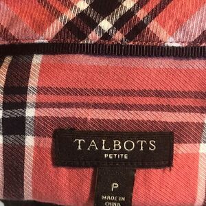 TALBOTS Mauve Orange Plaid Botton Down Front Long Sleeves Shirt Size: Small