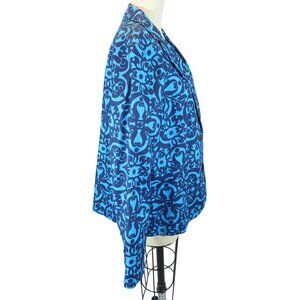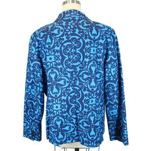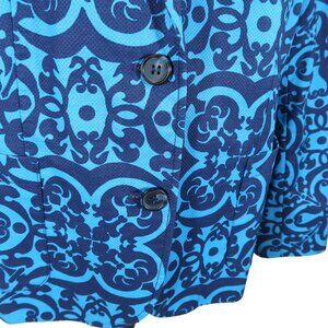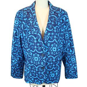 TALBOTS Medallion Print Cotton Blend Blazer Size 16 Teal Navy Preppy Summer