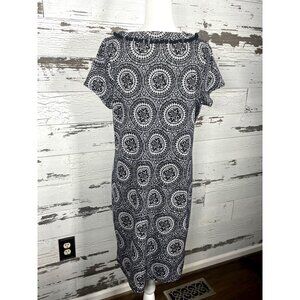 TALBOTS Medallion Shift Dress Black/White Sz Large NWOT