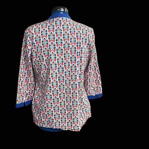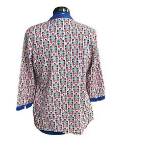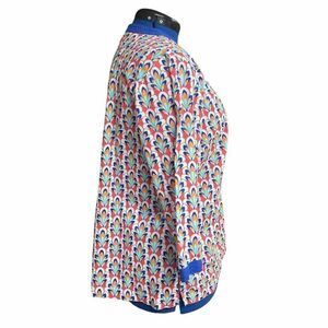 TALBOTS Multicolored Peacock Print Tunic Top Blouse Size Large Petite V-Neck