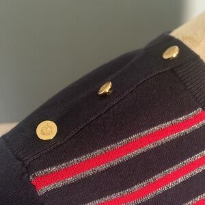 TALBOTS NAVY BLUE, RED,SILVER SPARKLE STRIPED SWEATER SIZE 3X. Holiday nautical