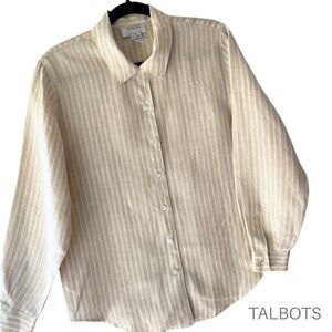 TALBOTS | NWOT IRISH LINEN BUTTON FRONT SHIRT LONG SLEEVE STRIPES | 8 PETITE