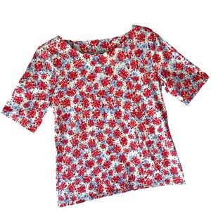 TALBOT’S | NWOT TWO PIMA COTTON SHORT SLEEVE TEES RED BLUE FLORAL TOPS | SMALL