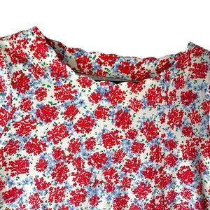 - Red floral tee | Rounded scalloped neckline | 100% Pima Cotton