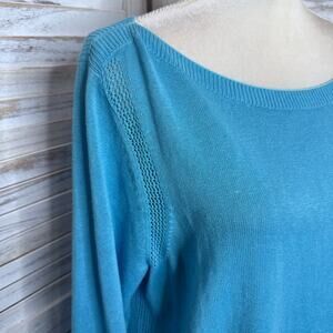 - TALBOTS NWT Women's L Oversized Lightweight Eyelet Knit Linen Spring Sweater Blue -