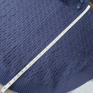 TALBOTS Navy Blue Cable Knit Button Collar Turtleneck Preppy Poncho Sweater