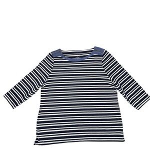 TALBOTS Navy Blue and White Striped Nautica Harbor 3/4 Sleeves Top Women's XL