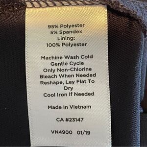 94% Polyester, 5% Spandex.