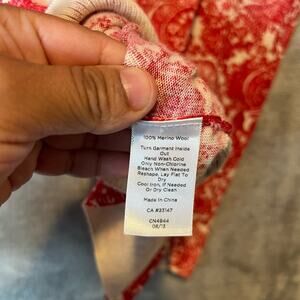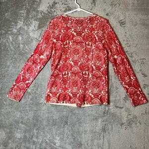 TALBOTS Orange Paisley Pure Merino Wool Cardigan Sweater Size Large Petite LP