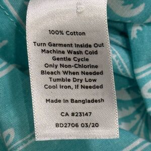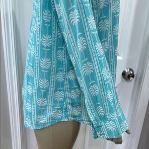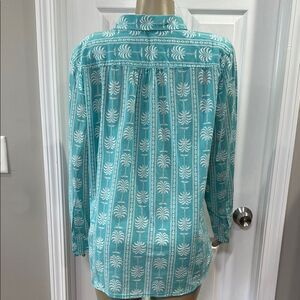 TALBOTS PALM PRINT SHIRT. AQUA.
