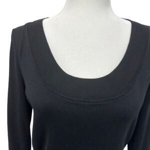 TALBOTS PETITES 3/4 SWEATSHIRT BLACK BIG POCKETS CASUAL, ROUND NECK SIZE SMALL