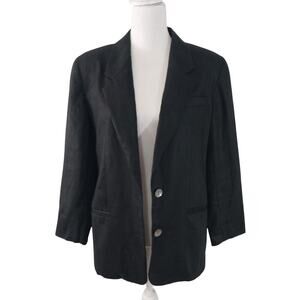 This gorgeous black linen jacket, blazer is 100% fine LINEN, from TALBOTS PETITES! Tailored impeccably, it features mother of pearl buttons at its 2 button front! Fully lined in black poly satin, shoulder pads, front slash pockets! Understated elegance! Size 10P, worn once! Excellent! Superb EUC Condition! **ABSOLUTELY GUARANTEED CONDITION: EUC MINTY-EXCELLENT TO LIKE-NEW, by Lily @HauteClub!***