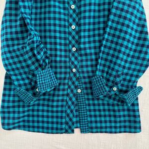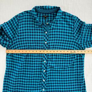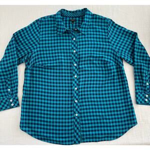 TALBOTS PLUS Button-Front Gingham Shirt – 100% Cotton – Blue & Teal Check – 1X