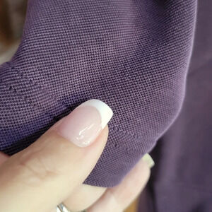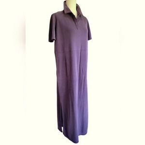 Gorgeous, luxury feel aubergine pique polo style dress with subtle sheen. Slinky soft; darts at bust; 15" slit on each side.