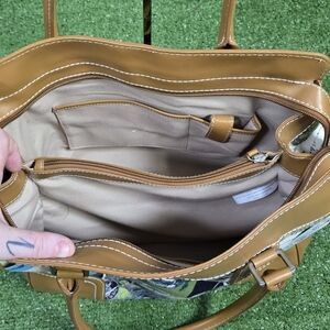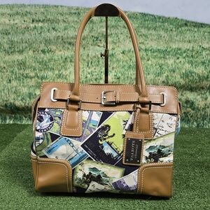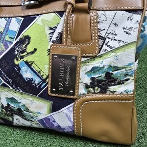 TALBOTS | POSTCARD RESORT CRUISE LARGE TRAVEL SATCHEL COTTON CANVAS VEGAN BAG
