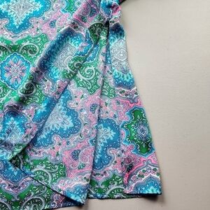 TALBOTS Paisley Medallion Top XL-P Flutter Sleeve Pink Blue