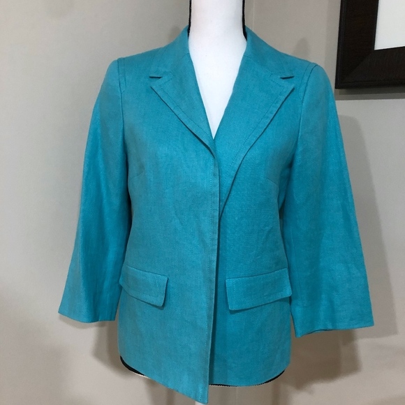 **TALBOTS* Petite Blue Open Linen Blazer Size 10P