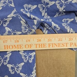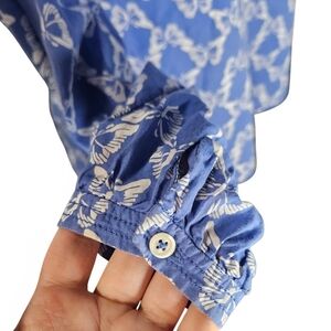 TALBOTS Petite Butterfly Print Cotton Tunic Blouse Shirt Size Small Blue White