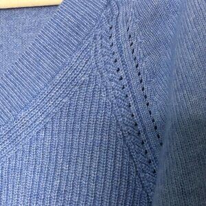 TALBOTS Petite Light Blue Heather Cashmere-Blend V-Neck Shaker-Stitch Sweater MP