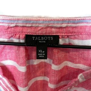 TALBOT'S Petite Pink Stripe 100% Linen V-Neck Popover Blouse Top Petite XL Beach