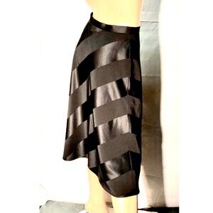 TALBOTS Petites Black Tonal Diagonal Wide Stripe A Line Knee Length Skirt~2