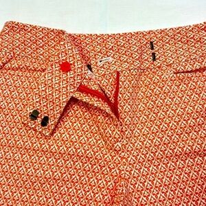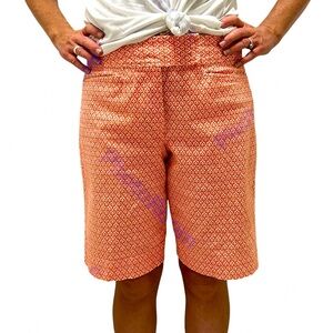 TALBOTS Petites | Geometric Bermuda Shorts Filigree Print Orange/White 8P