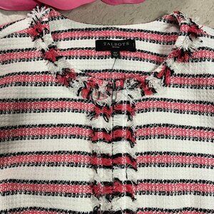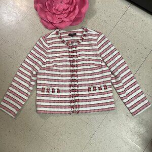 TALBOTS Petites Striped Fringe Tweed Full Zip Blazer Jacket Sz 16P Corpcore