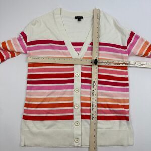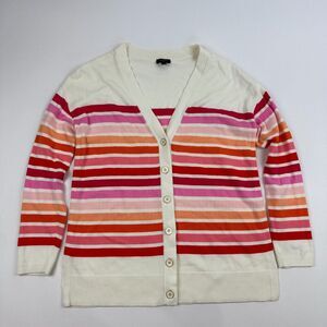 TALBOTS Pink Orange Red Striped Cardigan Sweater 3/4 Sleeve Sz MP PM M Petite