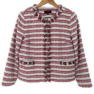 TALBOTS Pink/White/Black Stripe Cotton Fringed Zip Jacket Blazer Size 16P 16