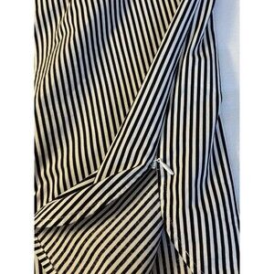 TALBOTS Piped Poplin Tunic Women Large B/W Striped LS Boat Neck Top Nautical
