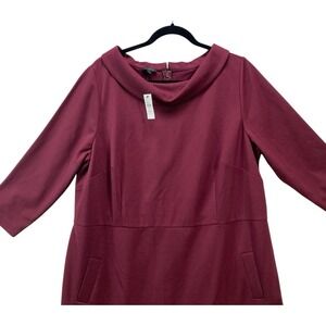 NWT TALBOTS Plus Solid Burgundy Stretch Sheath Dress Size 14W Turtle Neck 3/4