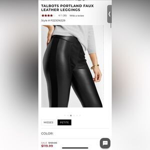 TALBOTS Portland FAUX Black LEATHER LEGGINGS Size 6 women NWT🏷