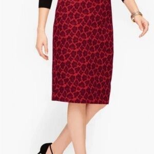 TALBOTS RED JACQUARD ANIMAL PRINT PENCIL SKIRT SIZE 16P NWT $99