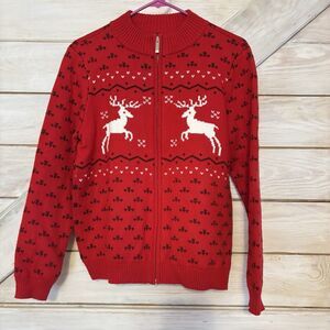TALBOTS RED ZIP FRONT CARDIGAN - NORDIC DEER FAIR ISLE MP