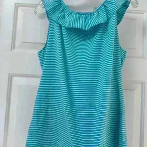 TALBOTS RUFFLE SQUARE NECK SHELL - AMALFI STRIPE SIZE XL