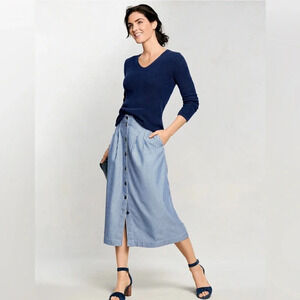 TALBOTS Railroad Striped Button Front Cotton Skirt w Pockets size 8