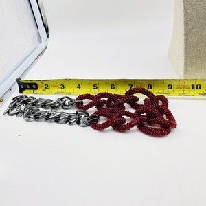 TALBOTS Red Beaded Chunky Chain Necklace Gunmetal Statement Classic Career LARP